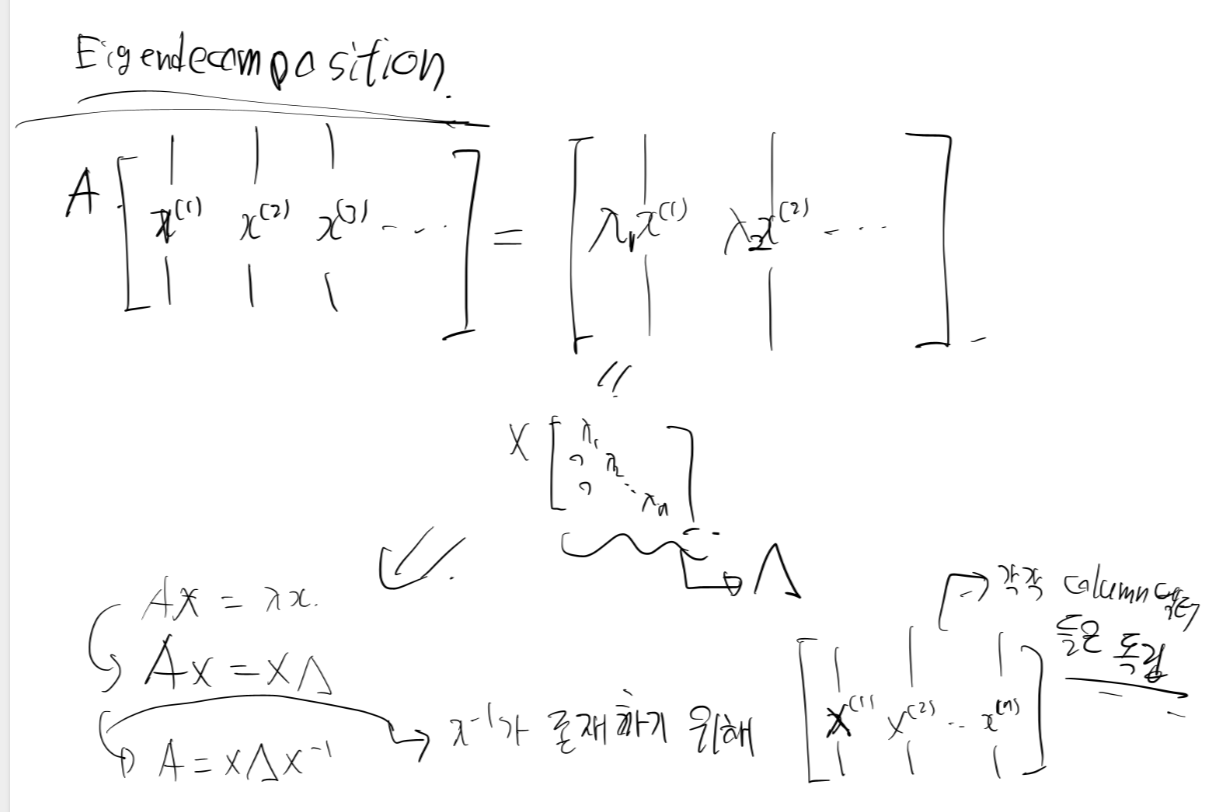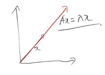 이것을 식으로 나타내면 Ax = λx , x not 0 이 때 λ가 고유값이고 Ax를 했을 때 스칼라배 된 벡터를 고유 벡터라고 합니다.
