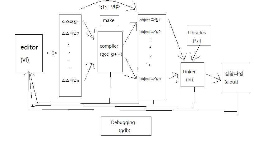 1. 그래서 편집기 vi에서 소스파일들을 작성을 하겠죠.
