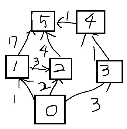 0에서 5번 정점까지 간다고 할 때 다익스트라로 계산을 해본다면