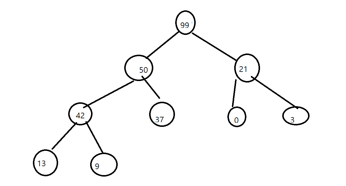 이렇게 나타 낼 수 있겠죠. 위 그림에서 99는 인덱스 1, 50은 2, 21은 3 .....이 될 것입니다.