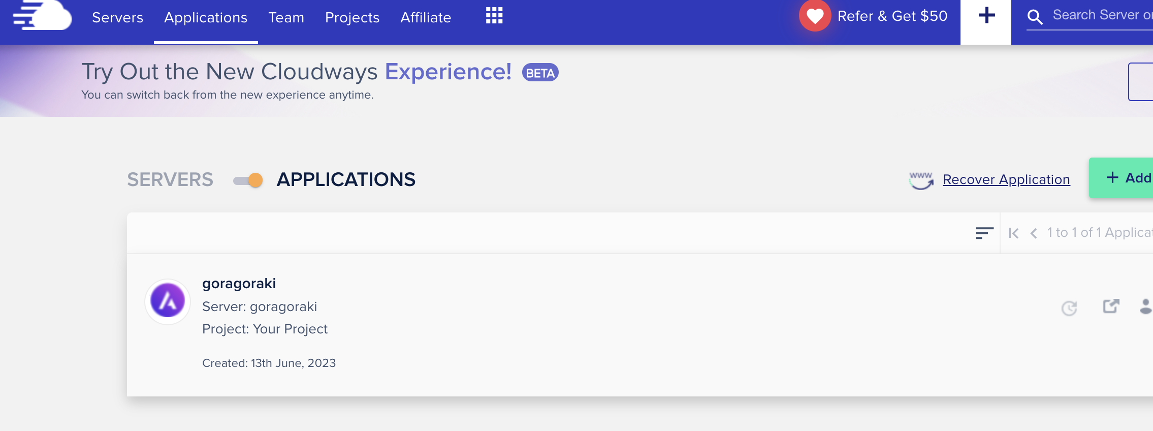 자 다시 클라우드 웨이즈로 돌아와서 application에서 자신의 어플리케이션 아이콘 클릭