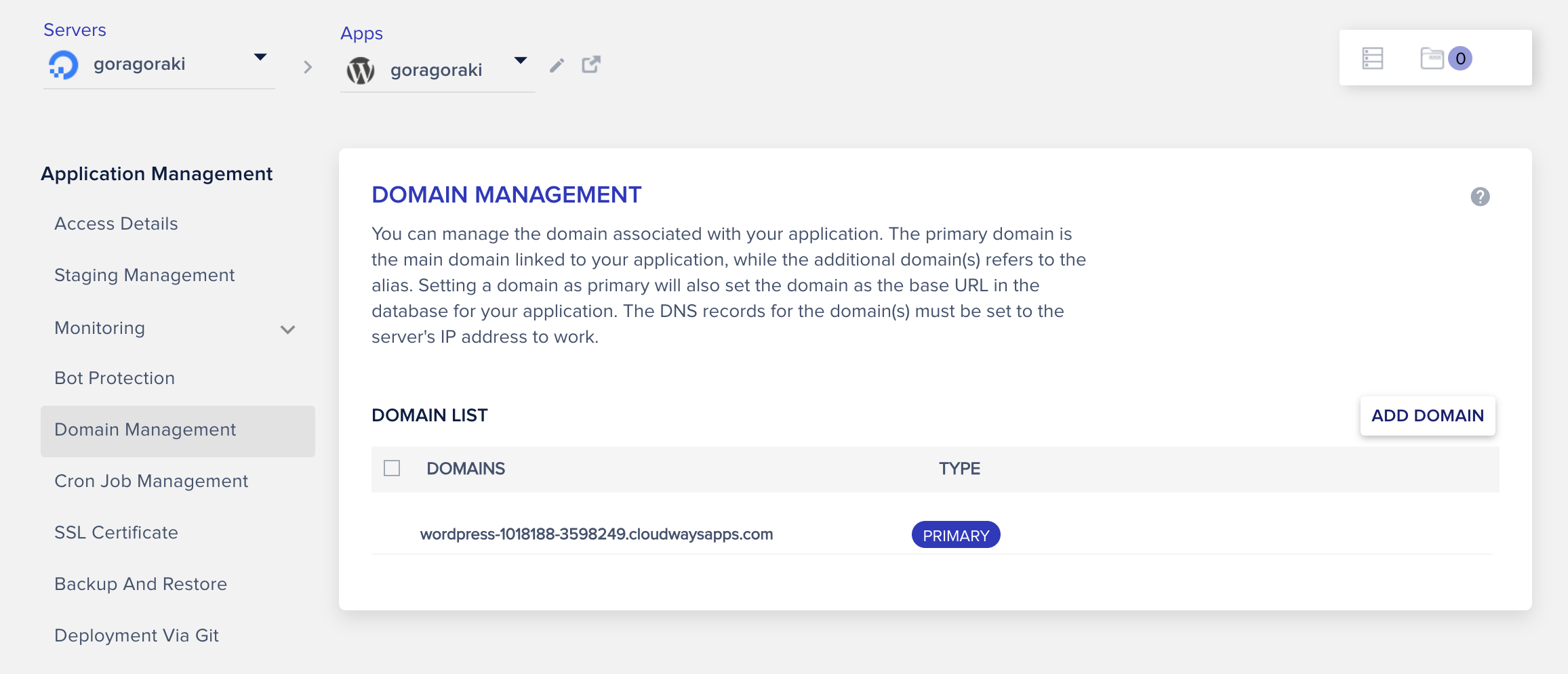 그 다음 왼쪽에서 Domain Management를 클릭해주면 이런 화면이 나와