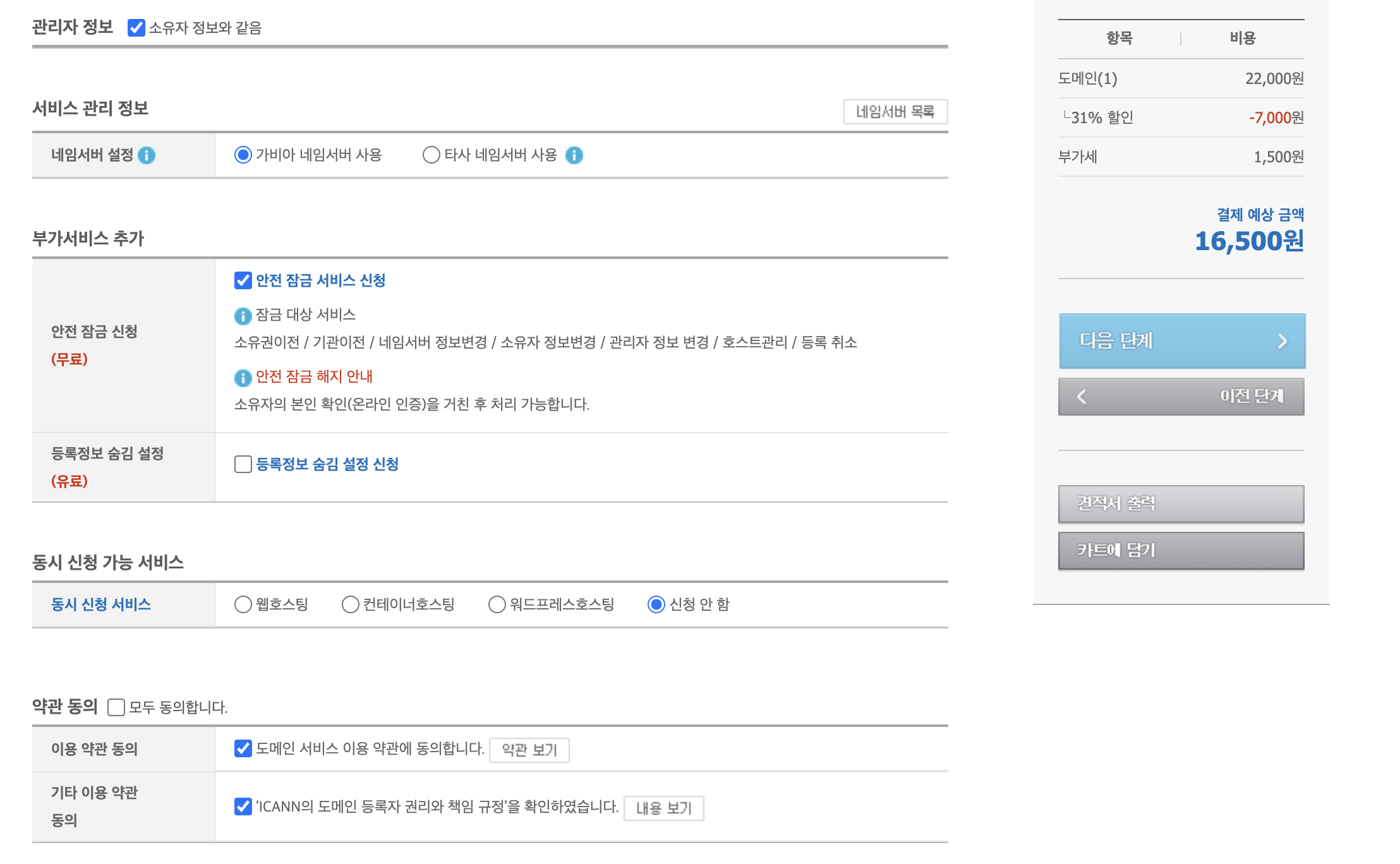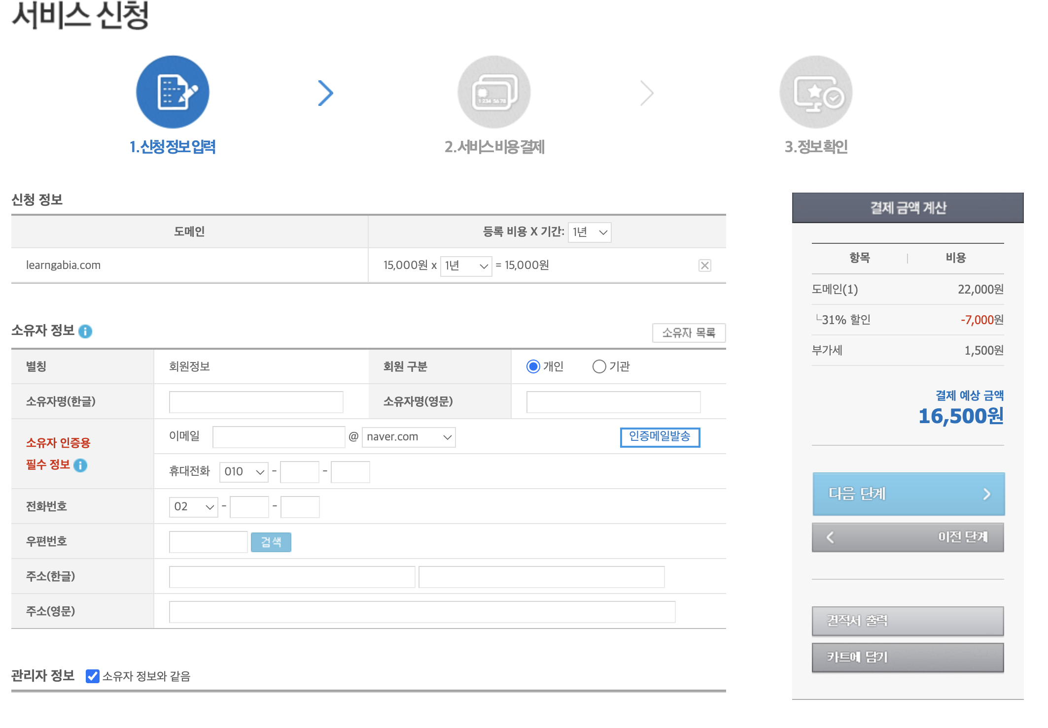 *가비아는 우리나라 1등 도메인업체여서 사용했음