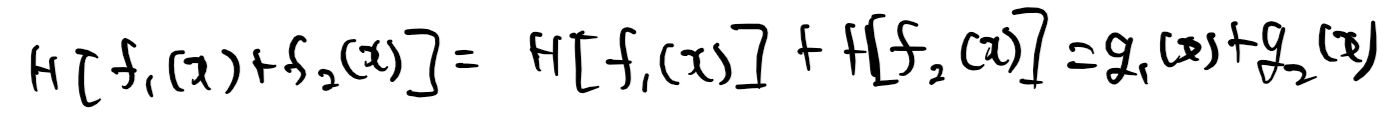 먼저 두개의 입력을 더한 후 시스템 함수에 넣은 것이랑 각각의 입력을 시스템 함수에 넣은 후 더한 값이랑 같다는 것이다.
