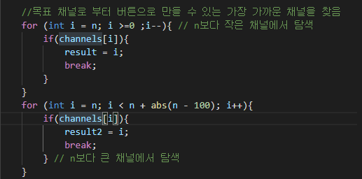 for (int i = n; i >=0 ;i--){ // n보다 작은 채널에서 탐색