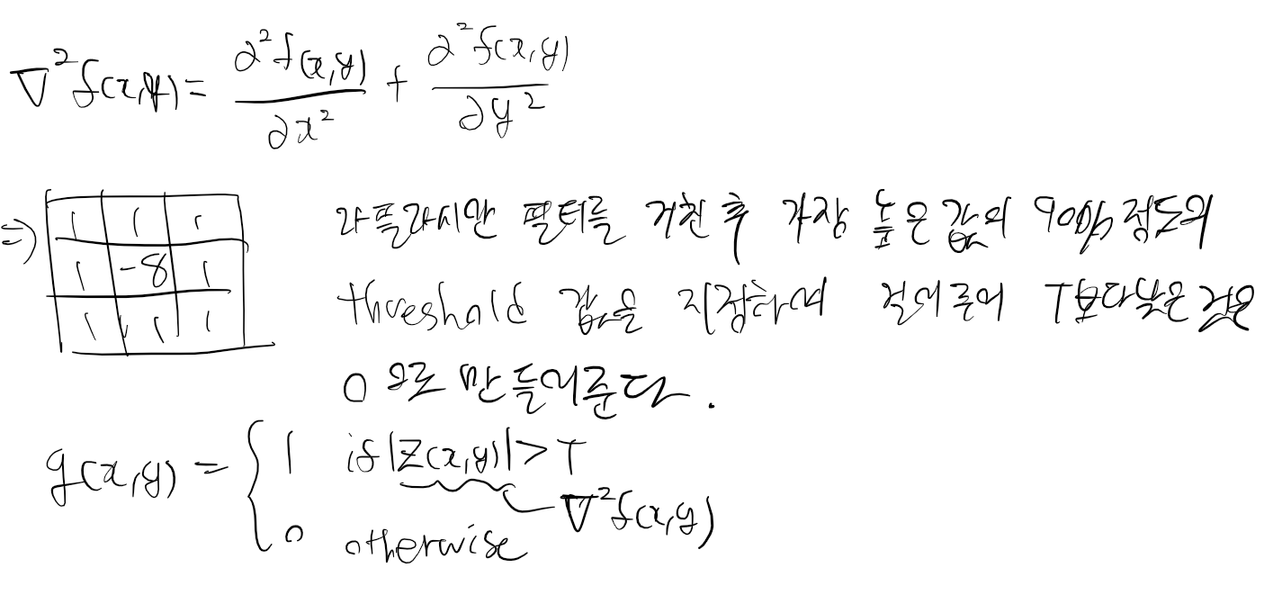 포인트(점)을 검출하는 것은 라플라시안과 thresholding을 결합하면 된다.