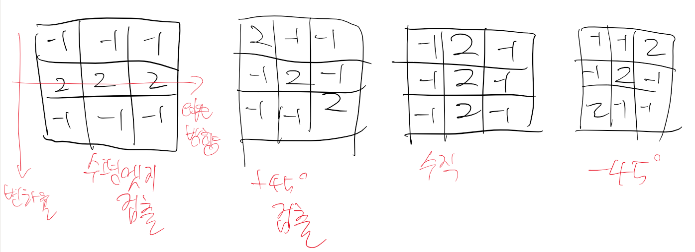 마스크 종류는 soble, roberts, prewitt(소벨, 로버트, 프리윗) 등을 사용하여 edge detection을 할 수 있다.