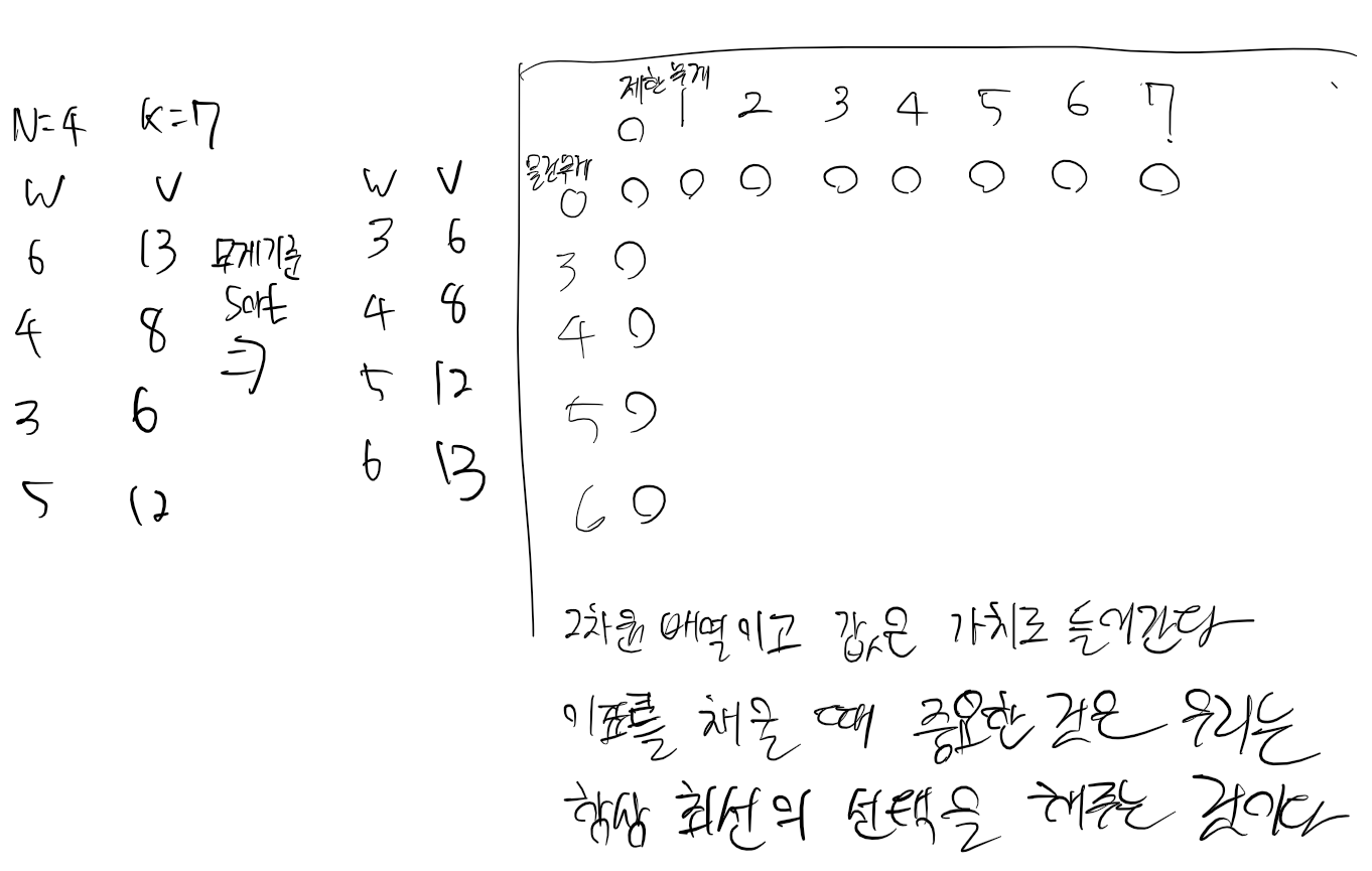 1. dp[i][j] = dp[i][j-현재 물건 무게] + 현재 물건 가치 이다.