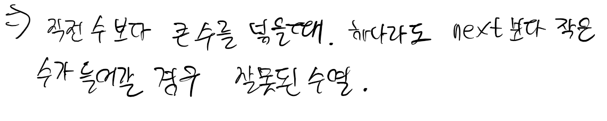 //다음 넣을 수 보다 현재 들어온 수가 작다면