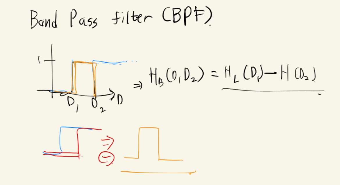 일단 저주파 필터와 고주파 필터의 cutoff frequency(D0 ) 가 같다고 할 때 두 개를 더하면 1이 됩니다.