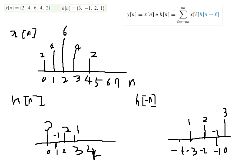 h[n]에서 h[-n] 즉, 원점 기준으로 대칭이동해주는 것이 포인트이다.