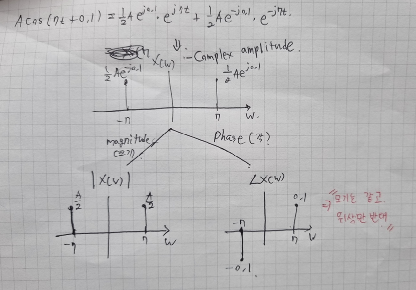 여기서 특징을 하나 알 수 있는데 w와 -w에 대한 complex amplitude의 관계는 크기는 같고 위상만 반대인 것을 알 수 있다. 이 특징을 conjugate symmetry 라 부른다.